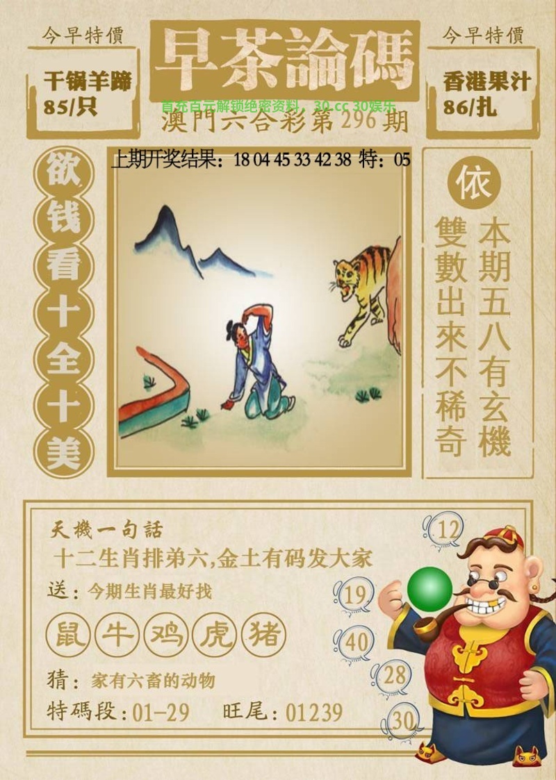 | 296期:单双两肖【单肖+虎猴】开:猴22准 |
