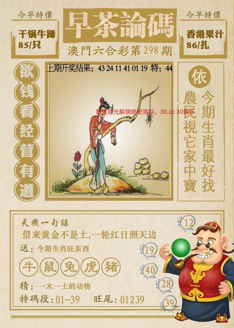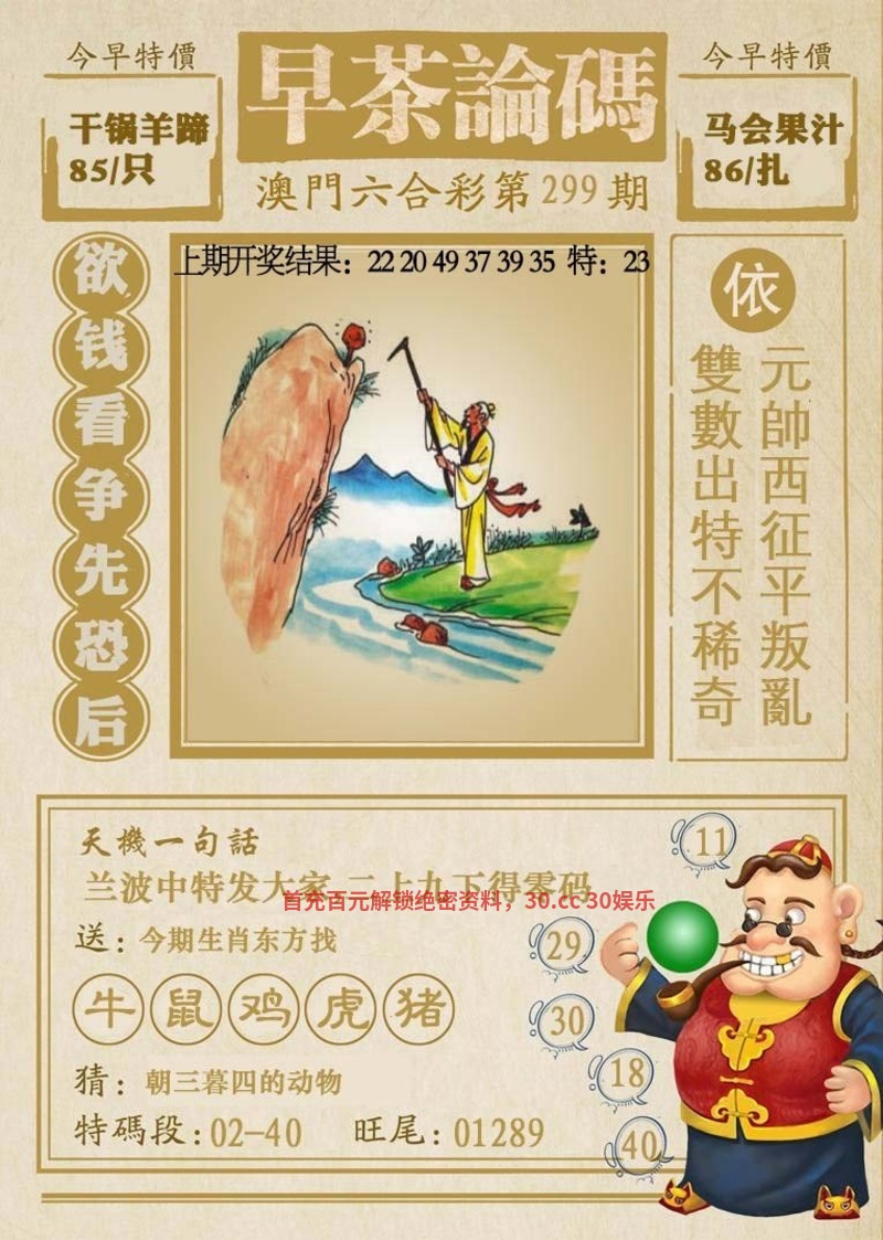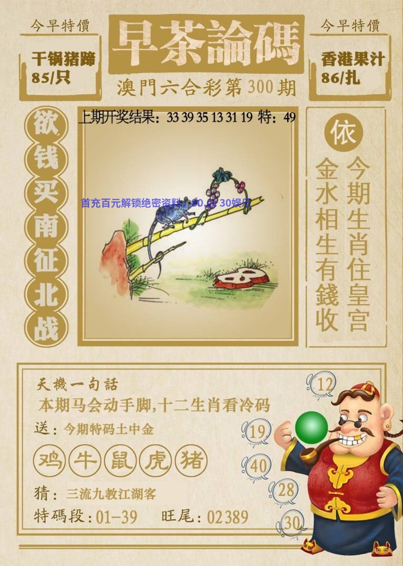 301期今日闲情暗语:缴费