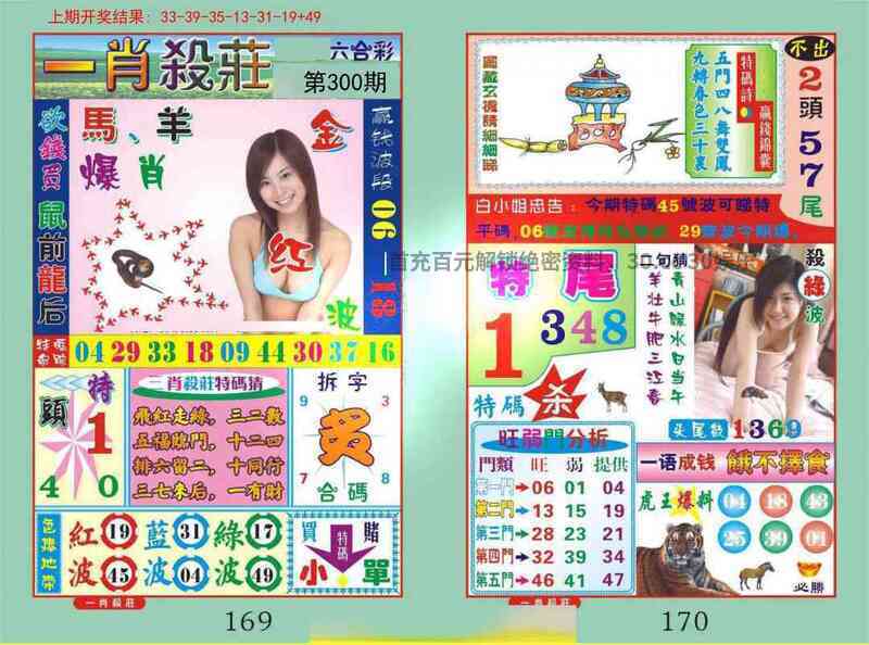 | 300期 | 羊 | 1头双 | 虎40错 | |